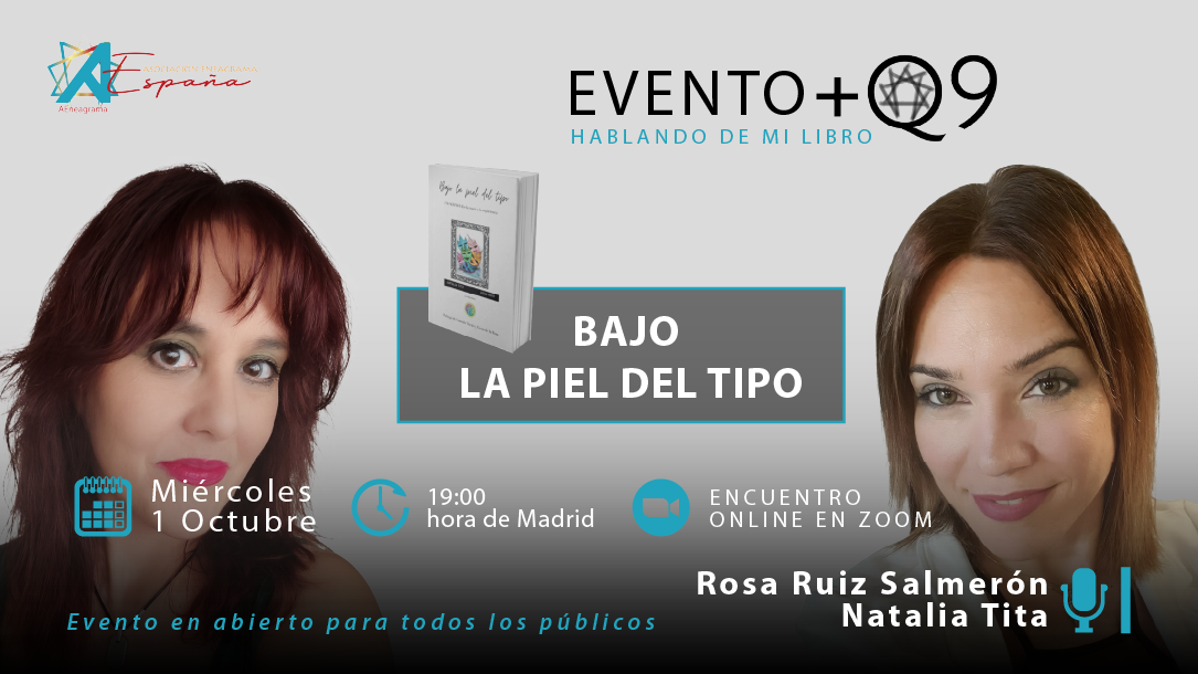 Retomamos nuestros eventos +Q9 y tenemos el gusto de invitaros el próximo miércoles 1 de octubre al evento: +Q9 «Hablando de mi libro: Bajo la piel del tipo» con NATALIA TITA Y ROSA RUIZ SALMERÓN Cuándo: miércoles 1 de octubre a las 19.00 (hora Madrid) Dónde: Plataforma online Zoom. A quién va dirigido: A socios de AEneagrama […]